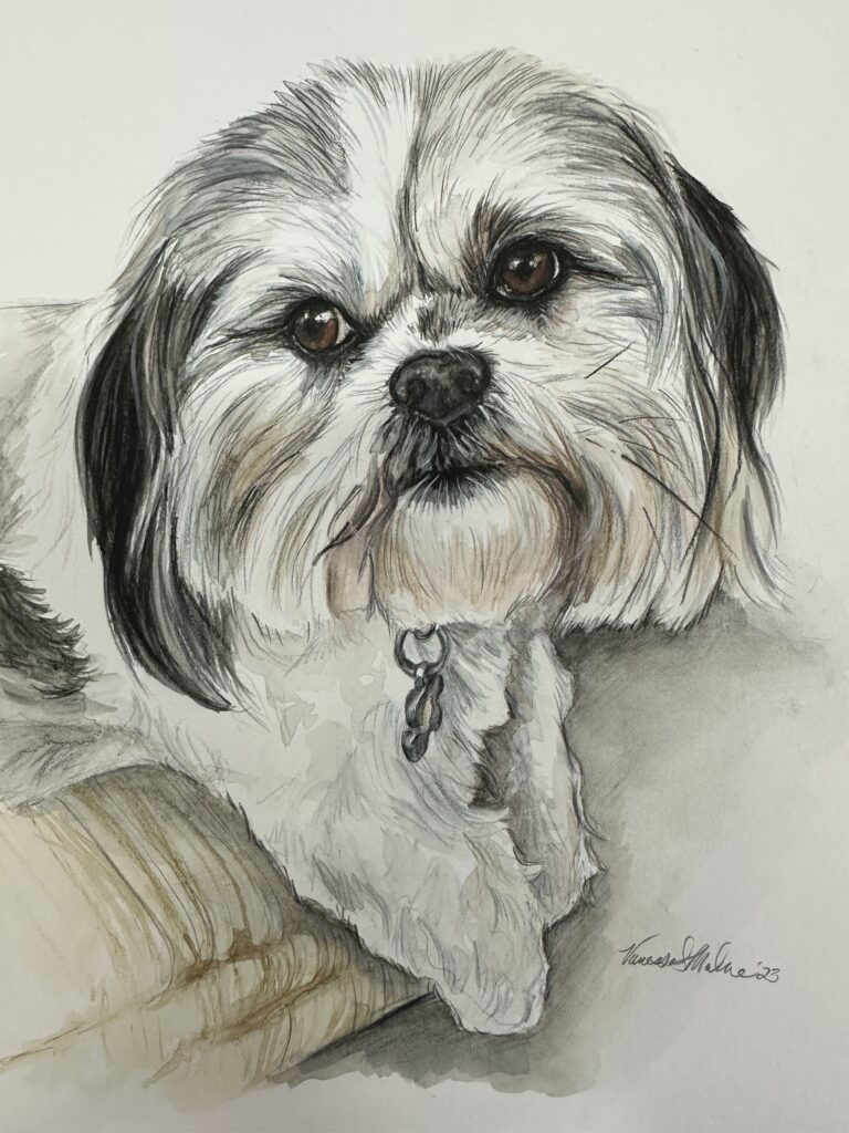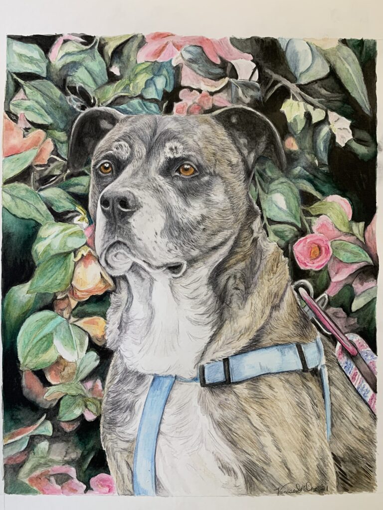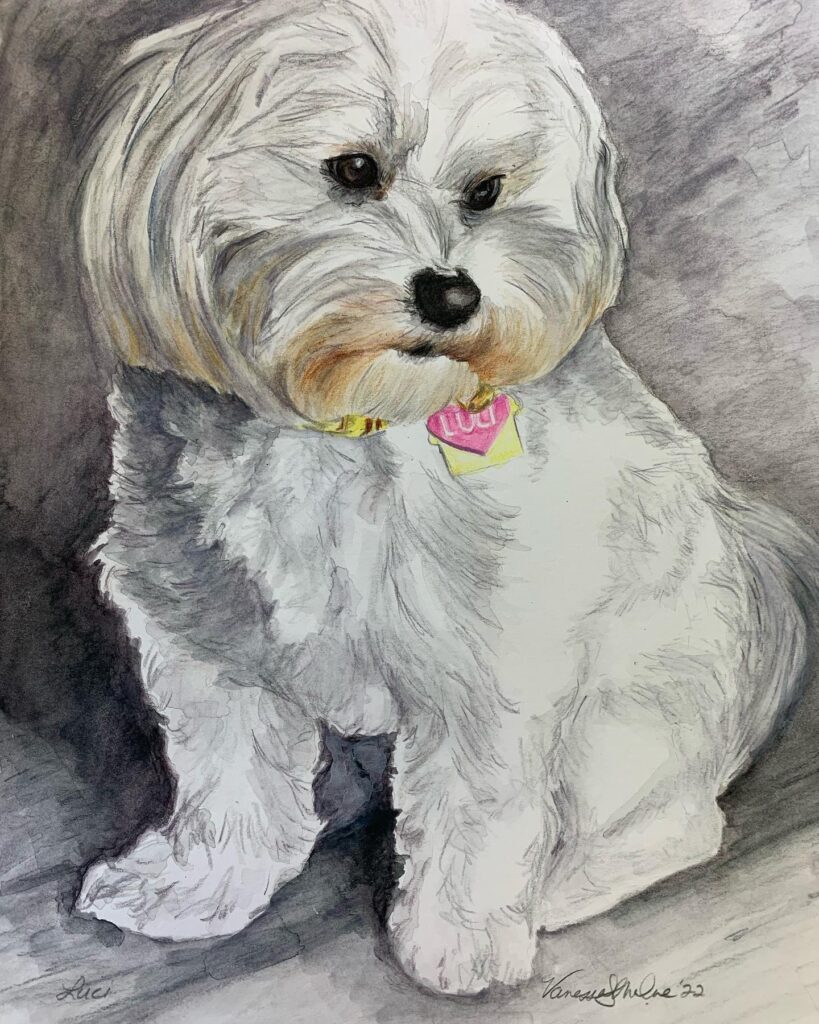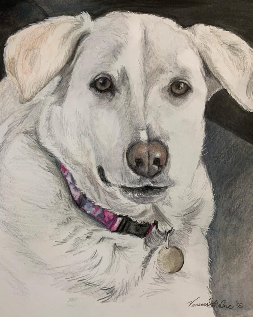 Most of the time the client leaves the choice of medium to me as the artist. Most of my portraits have been done in mixed media (watercolor, colored pencil and acrylic). Sometimes someone wants a black and white drawing, either pen and ink or pencil. If you have a particular medium in mind, please let me know.